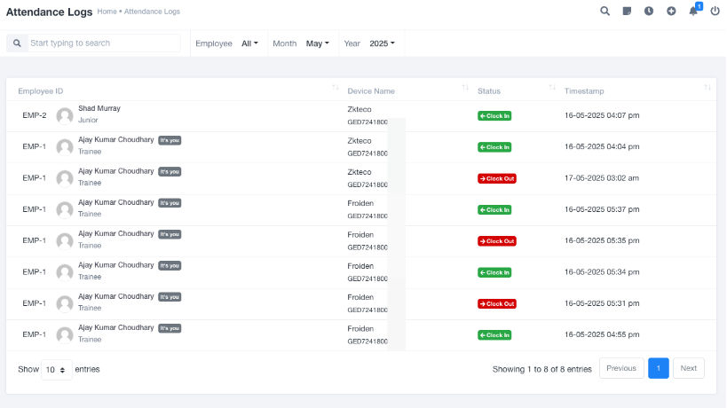 record punch-in and punch-out directly.